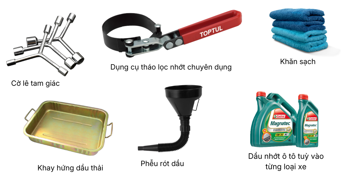 2. Chuẩn bị dụng cụ và vật tư trước khi thay nhớt ô tô tại nhà