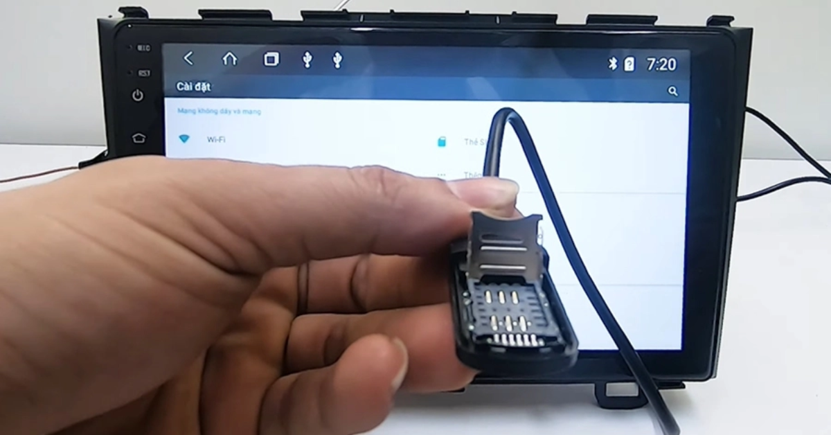 Khởi động lại màn hình: Bạn dùng một vật nhỏ như que chọc sim nhấn vào lỗ Reset trên mặt máy để khởi động lại hệ thống. Việc này sẽ giúp xóa các xung đột phần mềm tạm thời và thường khắc phục được ngay lỗi màn hình android ô tô bị mất tiếng.