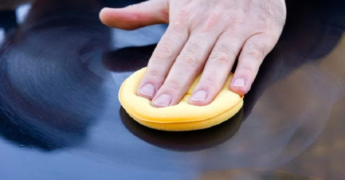 Dùng mút thoa một lượng sáp mỏng lên bề mặt sơn theo chuyển động tròn.