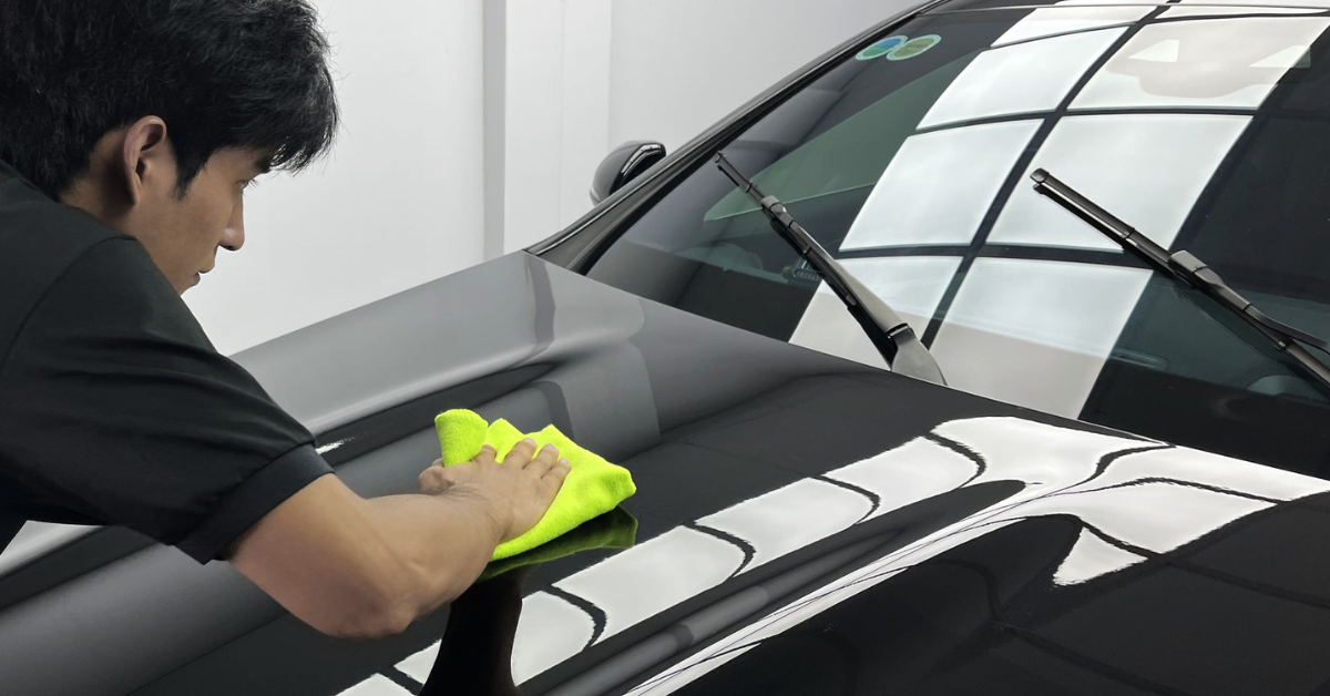Sử dụng khăn Microfiber sạch để loại bỏ sáp thừa cho đến khi đạt được độ phản quang mong muốn.
