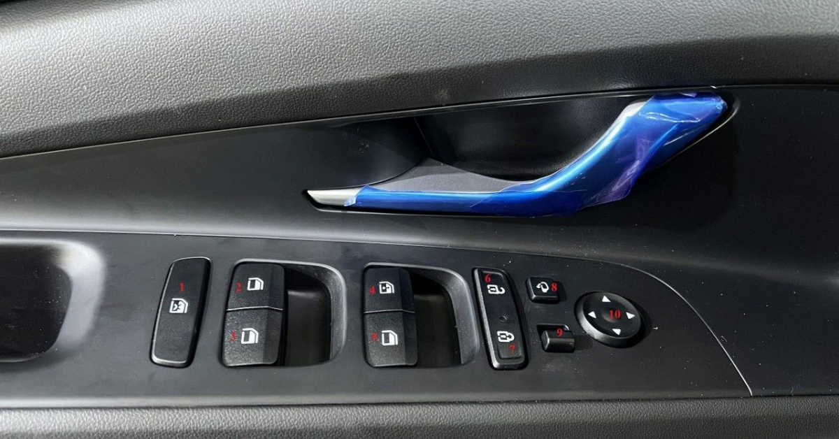 Phía cửa ghế lái là nơi tập trung quyền kiểm soát toàn bộ hệ thống cửa và gương của xe. Tại đây, bạn tìm thấy cụm nút lên xuống kính cho cả 4 cửa, kèm theo nút khóa kính để đảm bảo an toàn nếu có trẻ em ngồi hàng ghế sau. Nút khóa cửa trung tâm (Central Locking) giúp chốt hoặc mở toàn bộ các cửa chỉ bằng một lần nhấn.