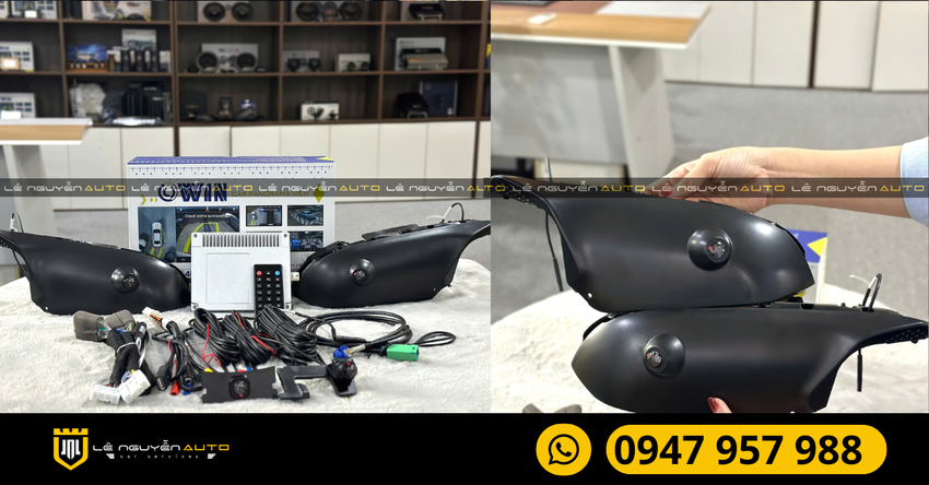 Hai camera bên hông được lắp dưới gương chiếu hậu, đây là bước quan trọng nhất quyết định đến thẩm mỹ. Camera được gắn chắc chắn, có thể sử dụng các bộ pát (giá đỡ) chuyên dụng theo xe để đảm bảo góc quay chuẩn và không làm rung hình.